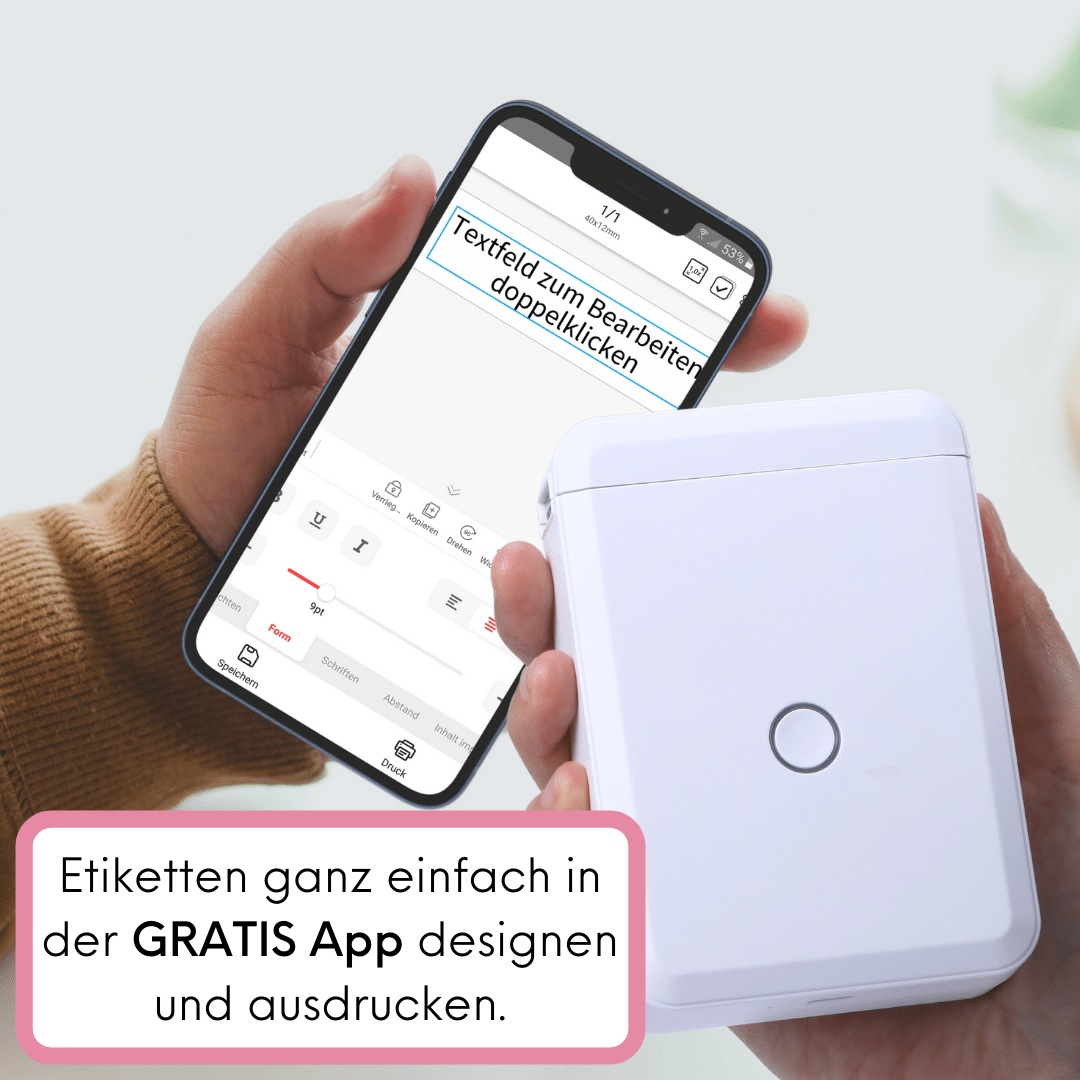 Designe Etiketten nach deinen Vorstellungen ganz einfach am Smartphone und drucke sie instant aus!